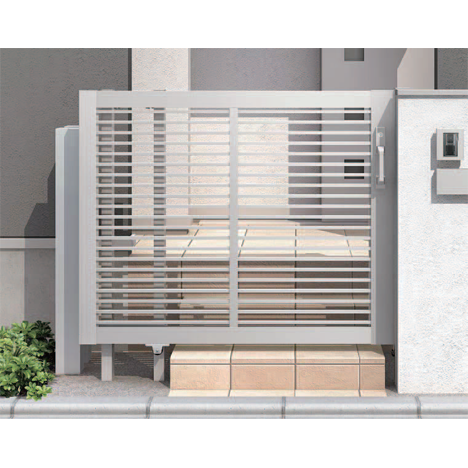アウタースライドは開き門扉と異なり、扉の開閉に必要なアプローチの幅をほとんど必要としません。引き込みスペースも道路側に設けるので、アプローチ階段が門扉の目前に迫っていても設置でき、敷地を最大限に活かせます。