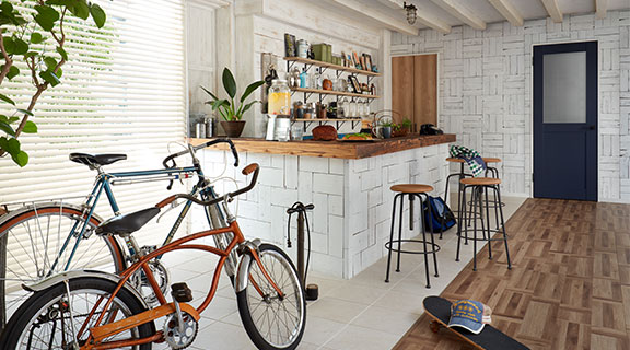 開き戸LAA(ナチュラルオーク)/把手 角型L(アイアンブラック)