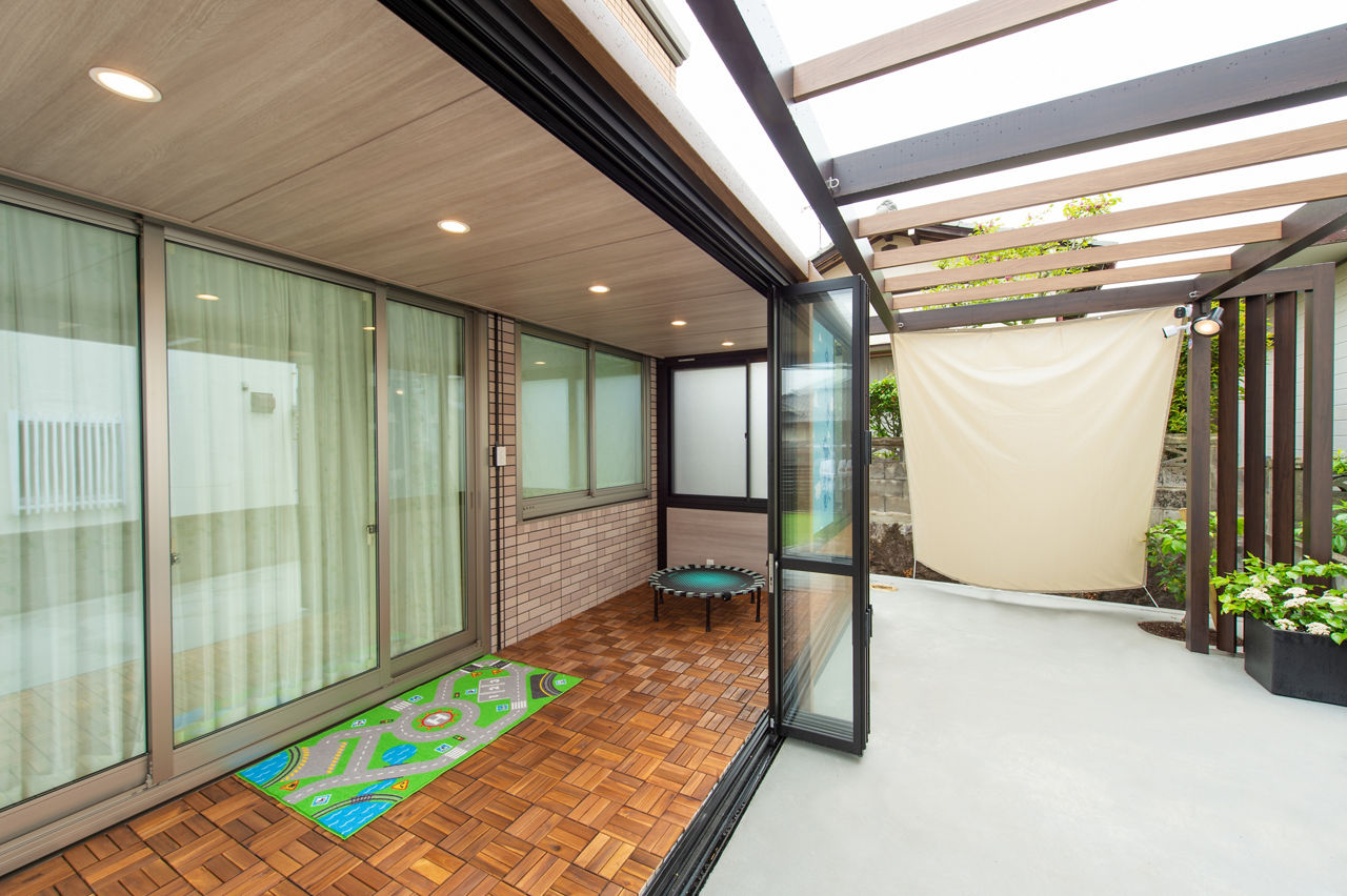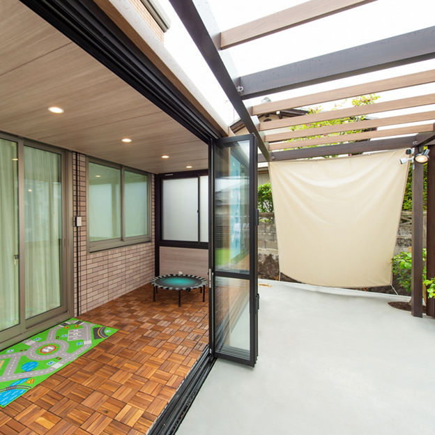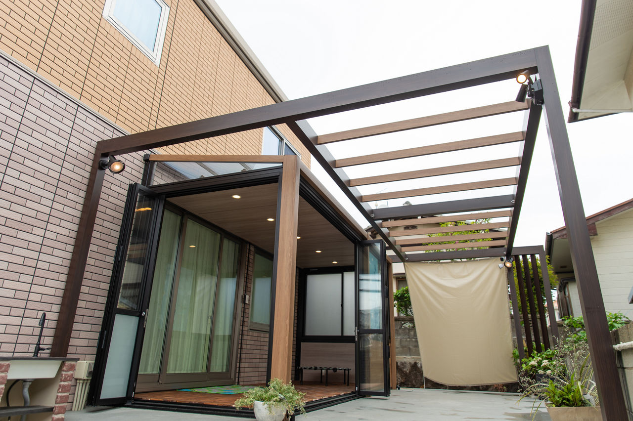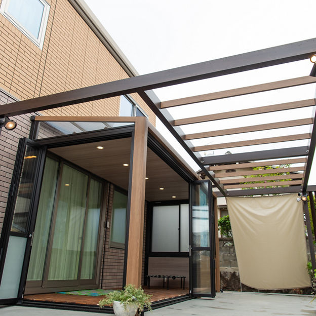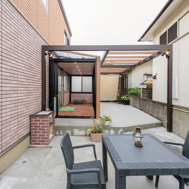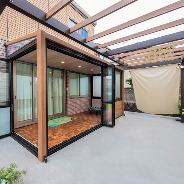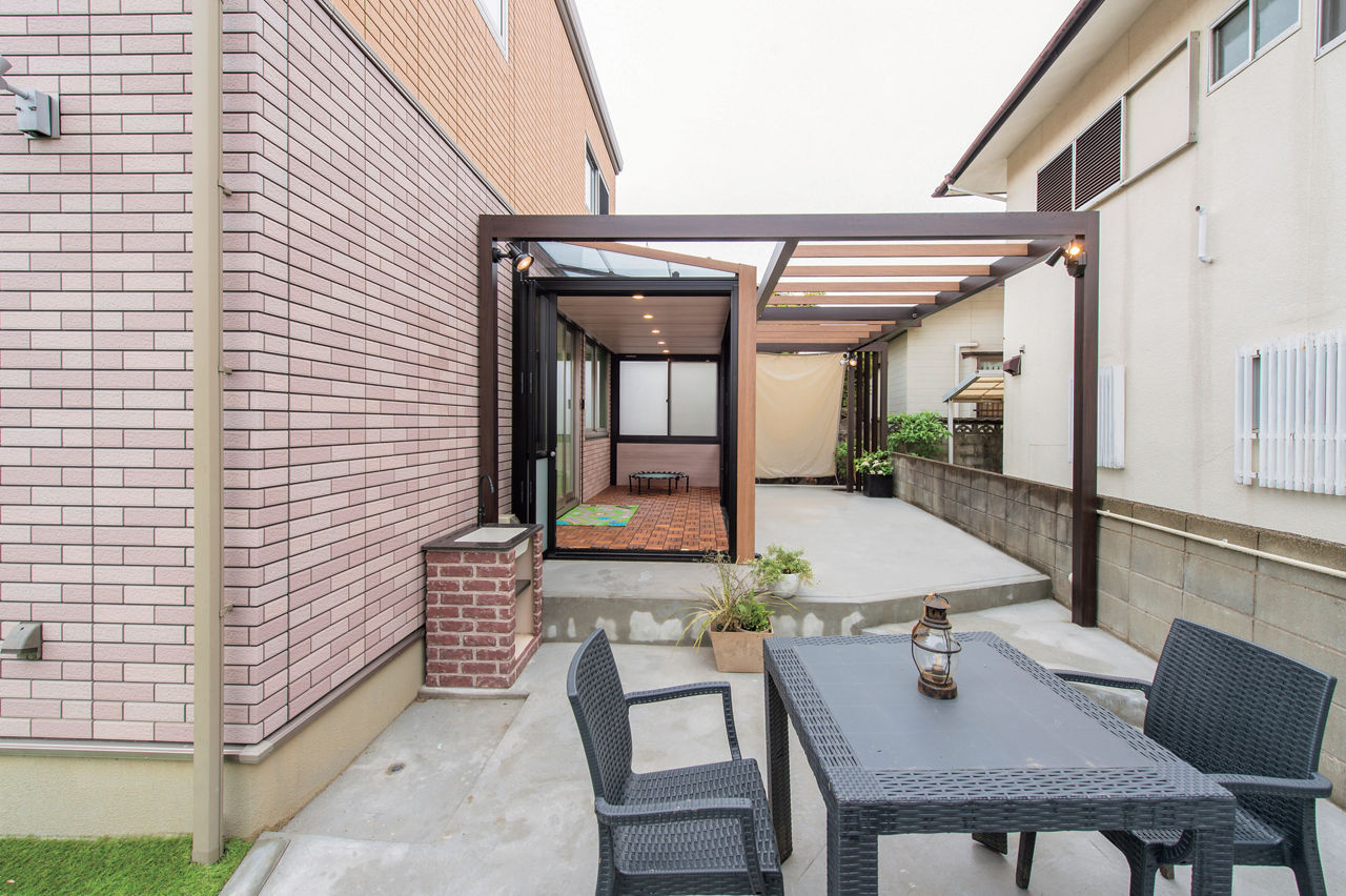 プラスGとガーデンルームGFによって、庭に居心地の良さと立体感がもたらされました。空間をツートンカラーでコーディネートし、変化に富んでいながら一体感のある空間をつくりだしています。