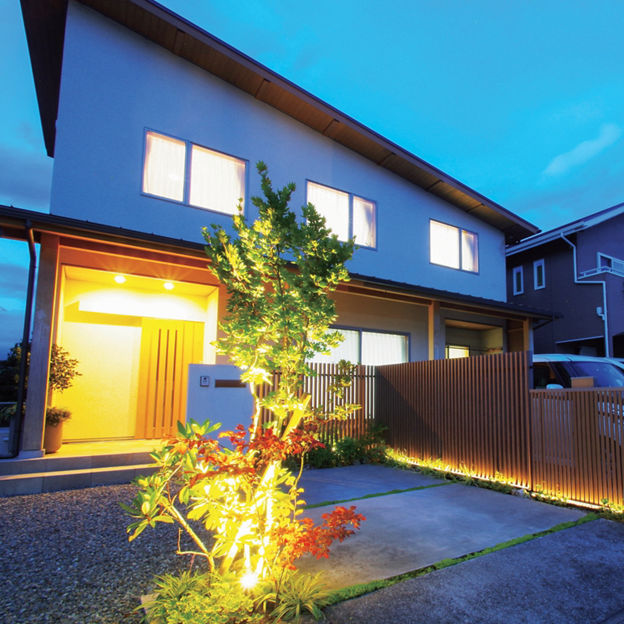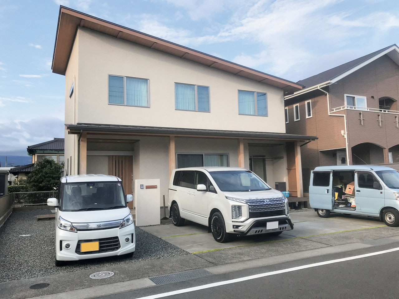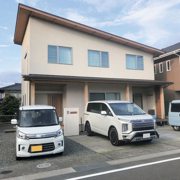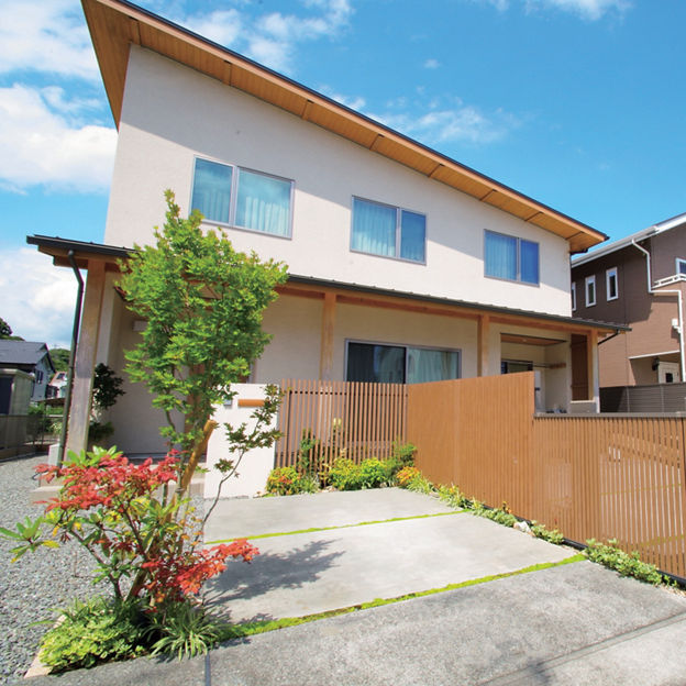 カースペースのセキュリティを高めるため、オーバードアとフェンスでしっかりと囲い、必要な高さで目隠しをすることでプライバシーを確保。平日は駐車スペースとして、休日はドッグランやバーベキューを楽しむプライベートスペースとして有効活用しています。