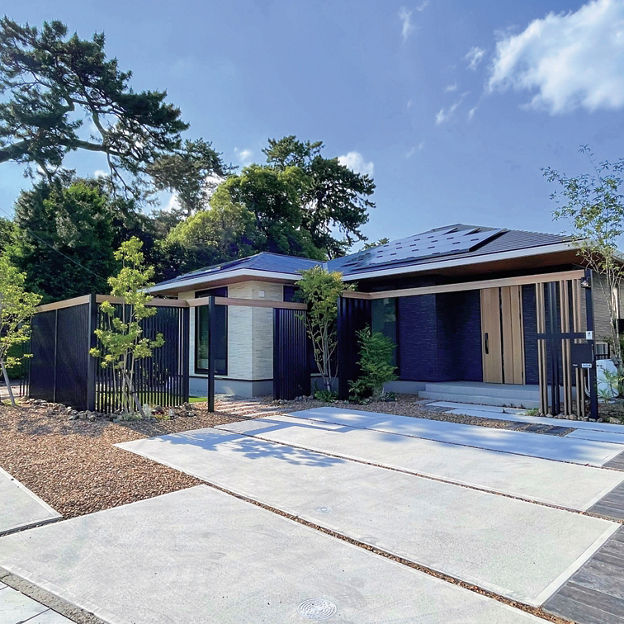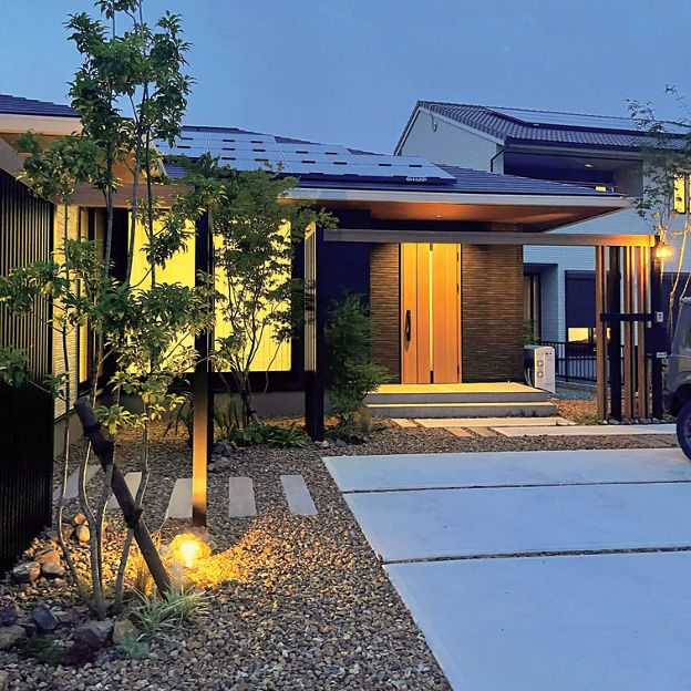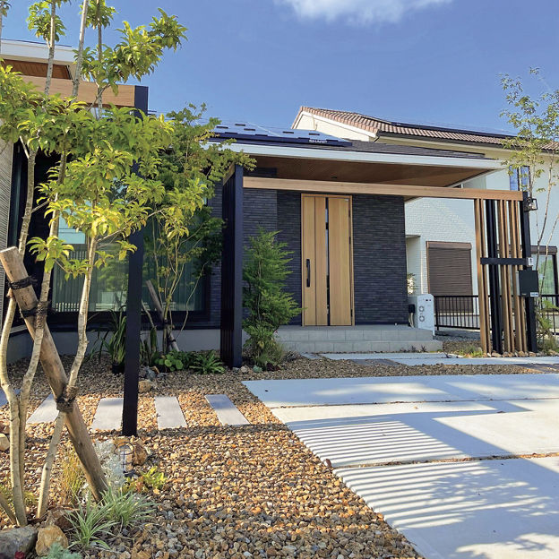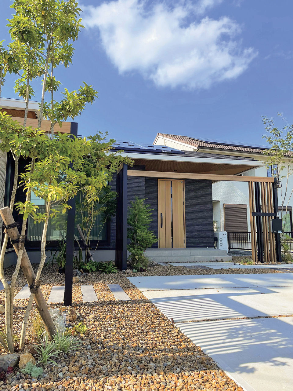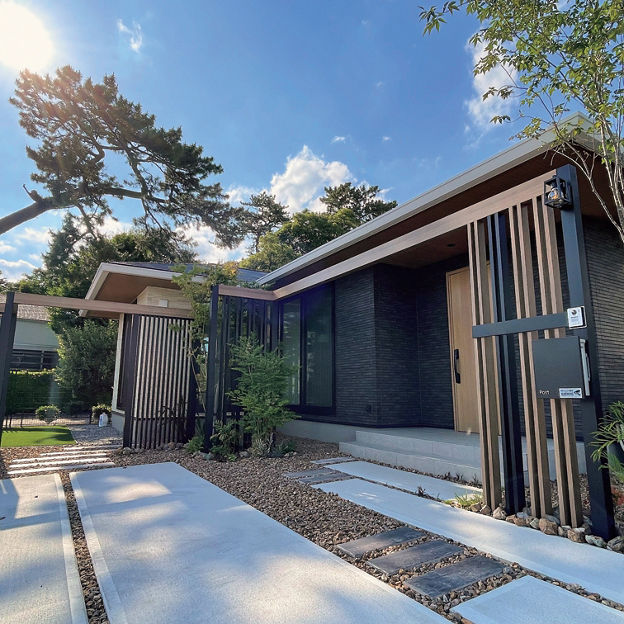 ※画像タップで表示ON /OFF切り替え平屋住宅の水平ラインを強調したファサード平屋住宅の水平ラインを際立たせるようにプラスGを配置。縦格子のGスクリーンで道路側からの視線を遮りつつ、抜け感のある外観を形成しています。玄関ドアのカラーと合わせた木調色によって空間に一体感が生まれました。 採用商品 プラスG(Gスクリーン)プラスG(Gフレーム) ※販売を終了している商品やカラーが含まれている場合がございます。 詳細は最新カタログをご確認ください。 関連キーワード #ナチュラル#こだわりの植栽#フェンスで目隠し#玄関アプローチにこだわる#玄関・門まわり#ブラックショールームを探す施工店を探す この事例をシェア 検索結果一覧に戻る一緒によく見られている事例趣と安心感のあるナチュラルモダンの外構カーポートSCと調和したガーデン人工木のデッキでマルチに使える庭へ縦格子と緑が調和したアプローチ格子をあしらったもうひとつのリビングGフレームでつくるアウトドアリビングカーポートの天井材を貼り分け敷地をゾーニング木陰の中でくつろげるオープンテラス玄関とテラスの屋根を一体的にさまざまな素材で立体感のある外構に実物の商品が見たい進め方・プランを相談したいお近くのショールームを探す / オンライン相談見積もりが知りたい現地調査を依頼したいお近くの施工店を探す