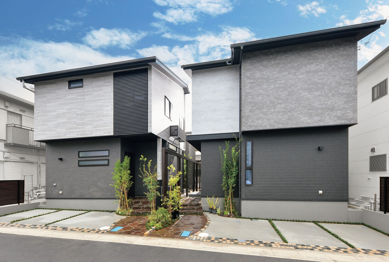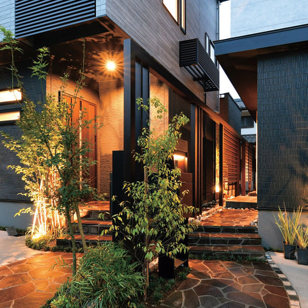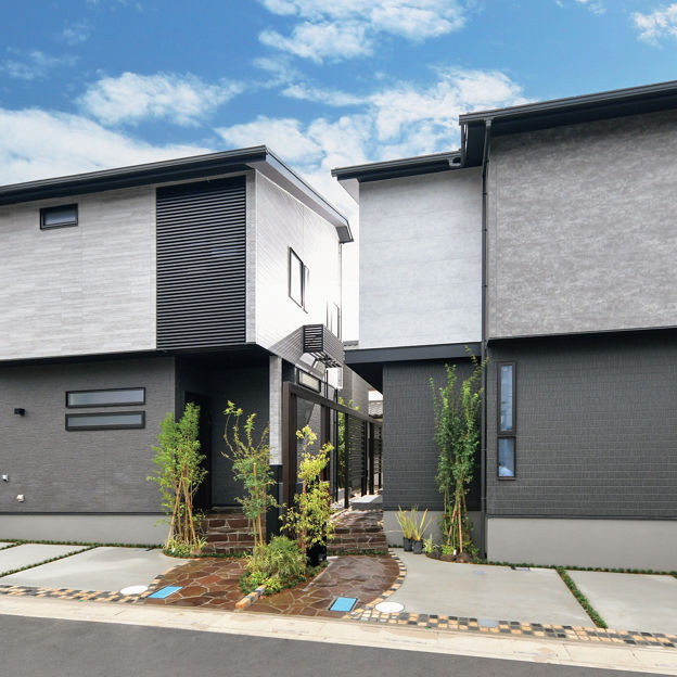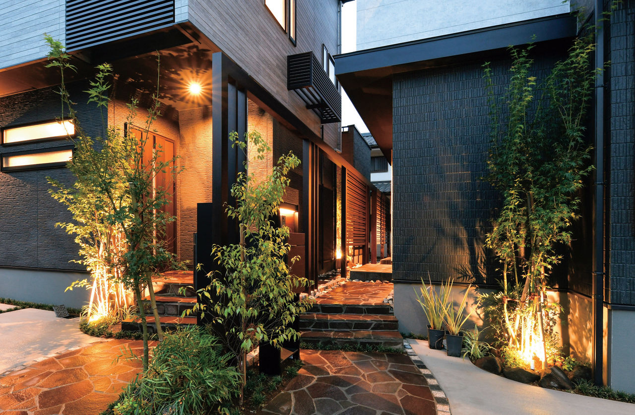 奥行きのある狭小敷地をプラスGで有効活用へ。目隠しが必要なところにはスクリーンや格子を配し、ゆるやかにつなげることで、通り庭のような空間をつくり上げました。プライバシーに配慮しながら、人が行き交える空間は、コミュニティ形成や地域の景観づくりにも役立っています。