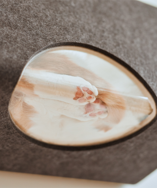 小さな箱にうずくまるのが大好きな愛猫は多いのではないでしょうか。ボックスは、そんな狭くて落ち着ける空間を実現しました。愛猫の寝顔を穴から覗けるのも特徴の一つです。