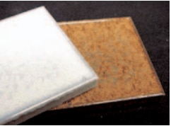 施釉タイルには、白い素地に釉薬を施したものと、有色素地に釉薬を施したものがあります。前者は色幅がなく均一な色で揃えたい内装壁タイルや施釉モザイクタイルに多く、後者は外装壁タイルに多いのが特徴です。